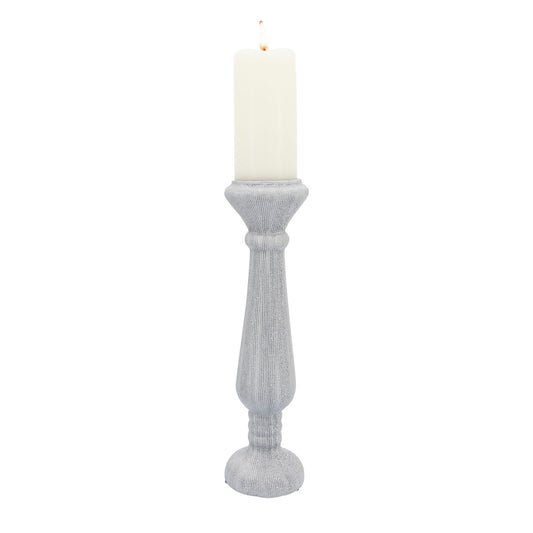 Cer, 15"h Candle Holder, Scratched, Silver