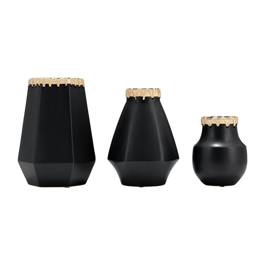 Cer, 11"h Vase W/ Weaving, Black