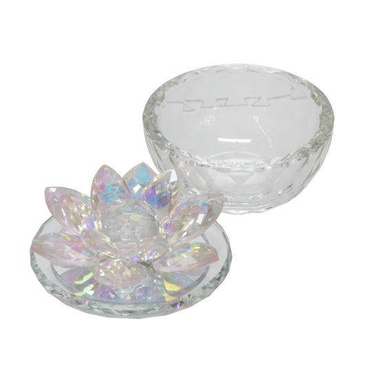 Glass Trinket Box Clear W/blush Lotus Top