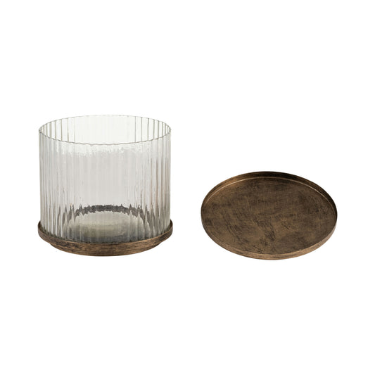 Glass,8",round Box W/top Handle, Brass