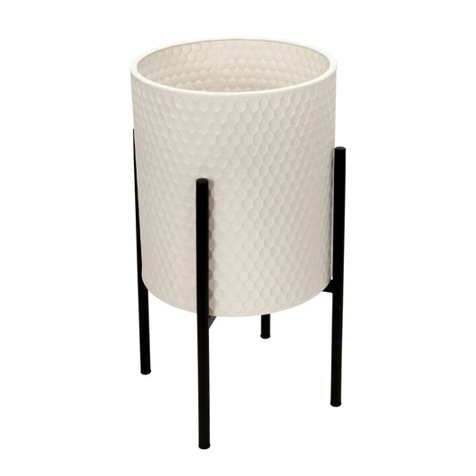 S/2 Honeycomb Planter On Metalstand, White/blk