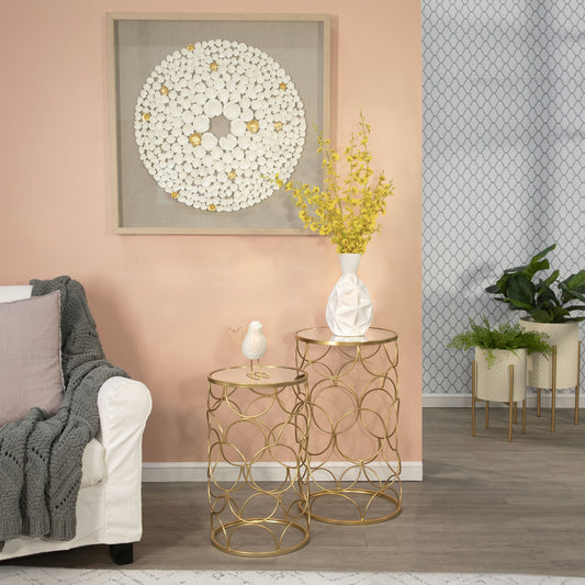 S/2 Mirrored Round Accent Tables 24/20" Gold