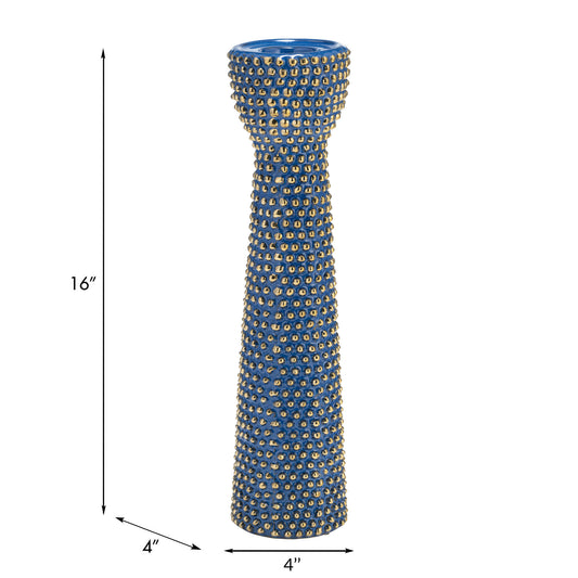 Spiked Navy/gold Ceramic Candle Holder 16"