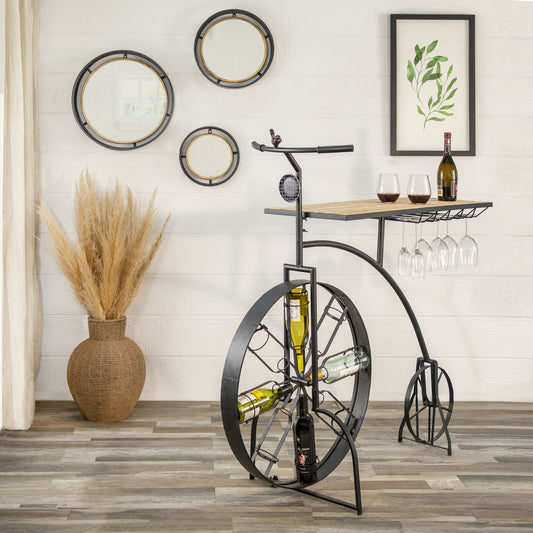 Two Tier 27"h Round Rolling Bar Cart, Gold