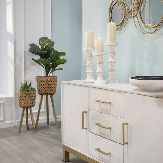 Wood, 13" Antique Style Candle Holder, White