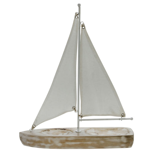 Sold outWood, 17"h Cloth Sail Boat, Nat