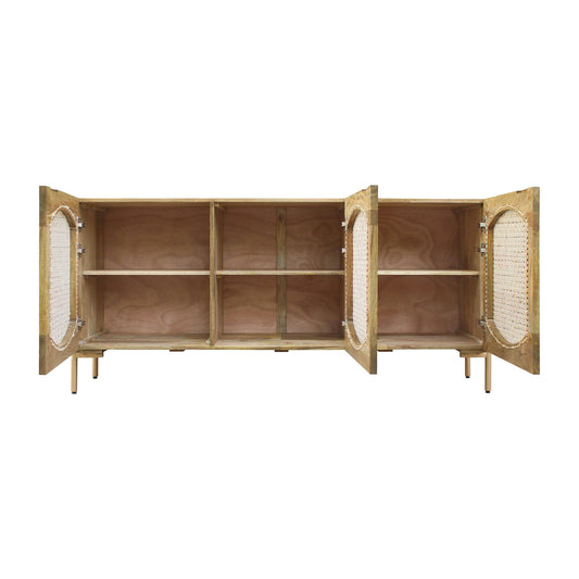 Wood, 63"l 3-door Cane Sideboard, Brown