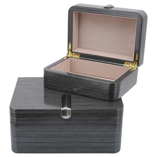 Wood, S/2 7/9" Box W/ Metal Clasp, Gray
