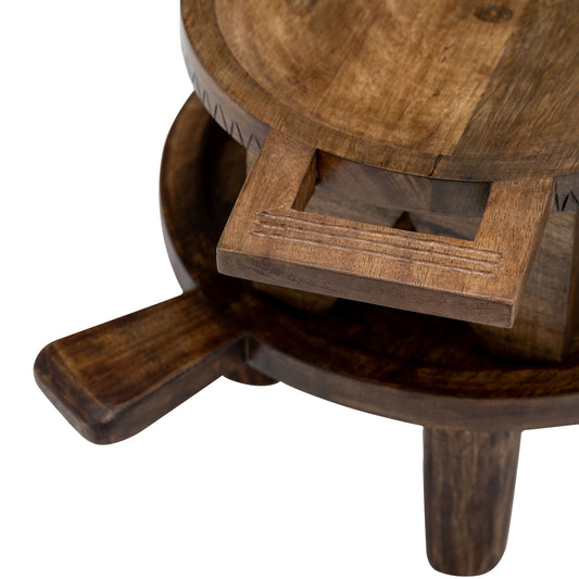 Wood, S/2 12/15" Round Risers W/ Handle, Brown