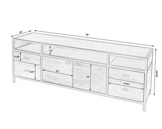 Butler Specialty Company, Hans Wood and Iron 78" TV Stand with Storage, Natural