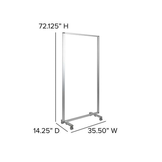 Transparent Acrylic Mobile Partition with Lockable Casters, 72"H x 36"L