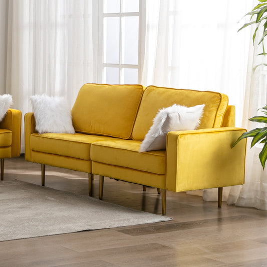 Lilola Home Theo Yellow Velvet Loveseat with Pillows