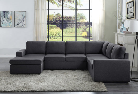 Lilola Home Sonoma Dark Gray Linen 6Pc Modular Sectional Sofa and Ottoman