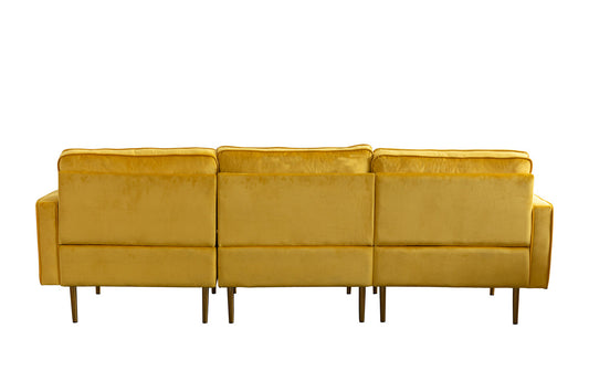 Lilola Home Theo Yellow Velvet Sofa with Pillows
