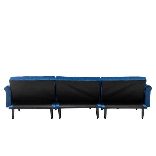 Lilola Home Piper Navy Blue Velvet Sofa Bed with Ottoman and 2 Accent Pillows
