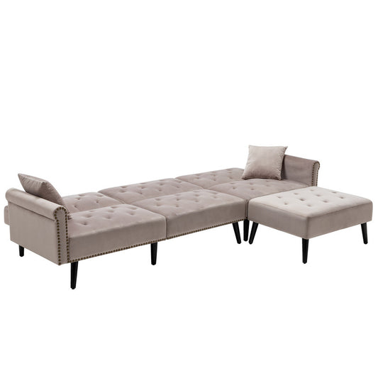 Lilola Home Piper Silver Gray Velvet Sofa Bed with Ottoman and 2 Accent Pillows