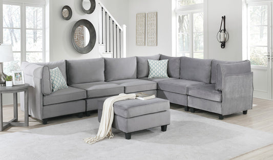 Lilola Home Simona Gray Velvet 7Pc Modular Sectional Sofa