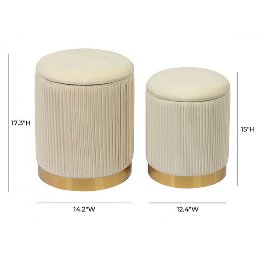 TOV Furniture Channeled Cream Velvet Storage Ottomans - Set of 2