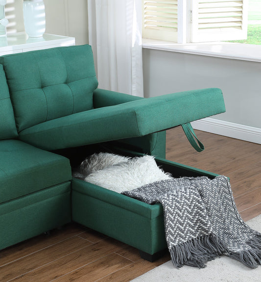 Lucca Green Linen Reversible Sleeper Sectional Sofa with Storage Chaise