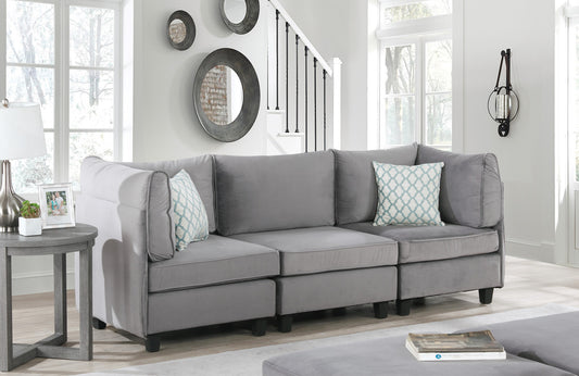 Lilola Home Zelmira Gray Velvet 4Pc Sofa