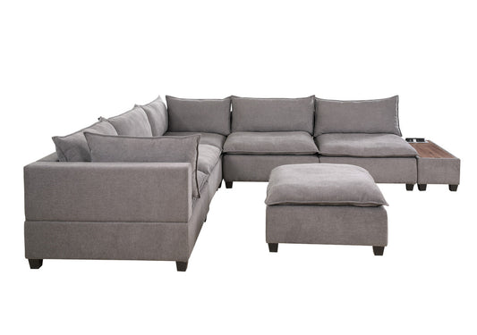 Madison Light Gray 7Pc Modular Sectional, Ottoman, USB Storage Console Table