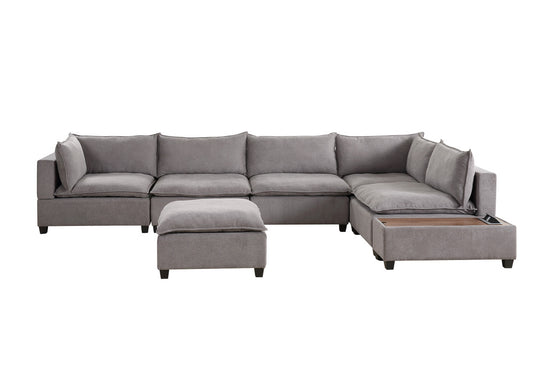 Madison Light Gray Fabric 7 Piece Modular Sectional Sofa with Ottoman