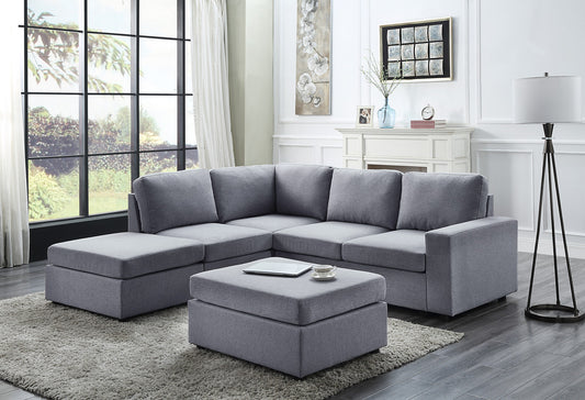 Madison Light Gray Fabric 6 Piece Modular Sectional Sofa with Ottoman