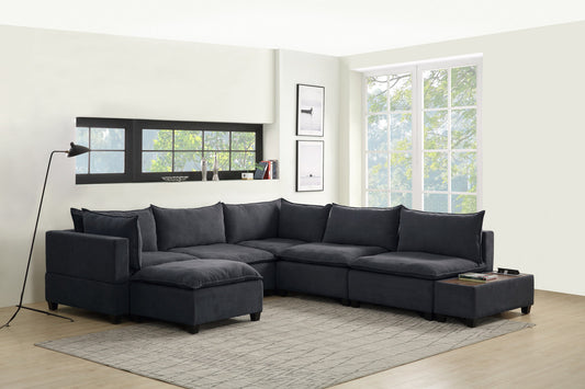 Madison Dark Gray 7Pc Modular Sectional Sofa, Ottoman, USB Storage Console Table