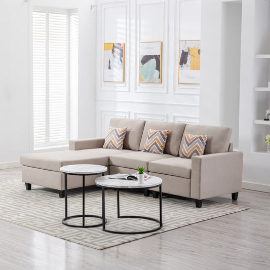 Nolan Beige Linen 3Pc Reversible Sectional, Interchangeable Legs, 89420-12B