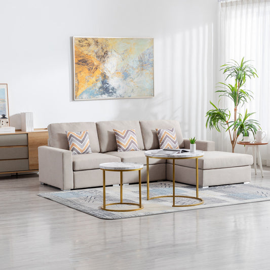 Nolan Beige Linen 4Pc Reversible Sofa Chaise with Storage Ottoman, 89420-21A