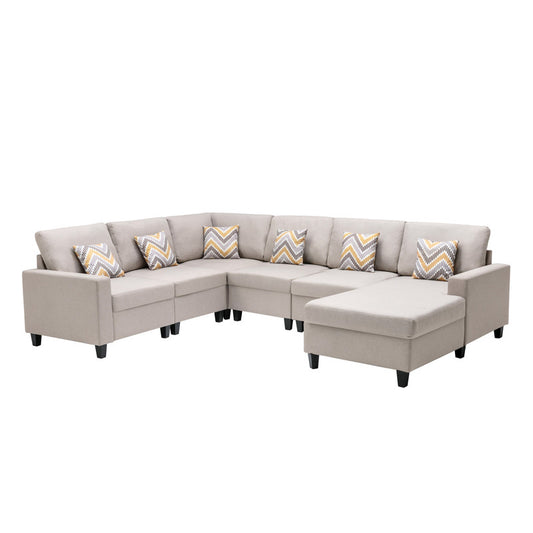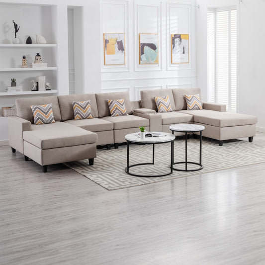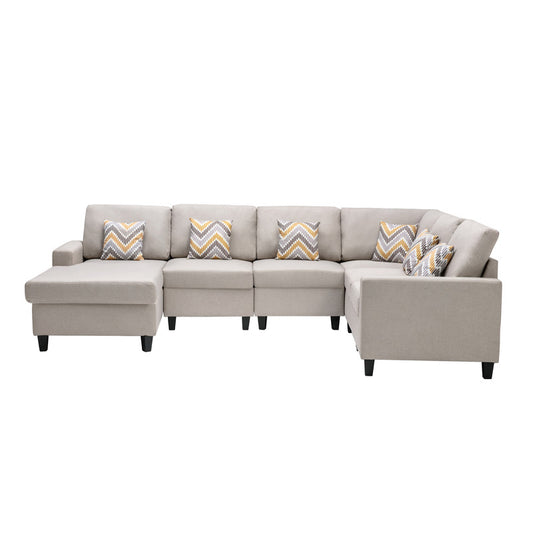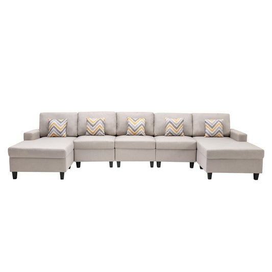 Nolan Beige Linen 6Pc Double Chaise Sectional Sofa with Storage Ottoman, Pillows