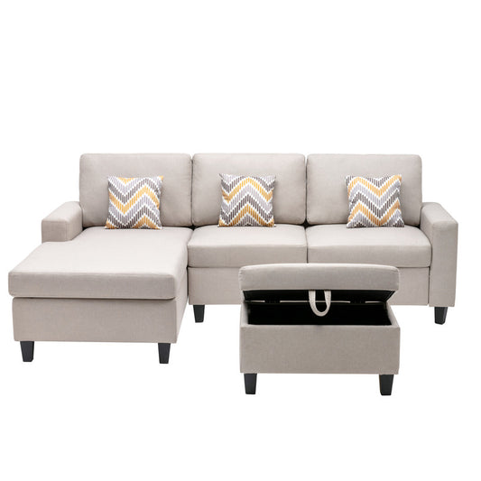 Nolan Beige Linen 4Pc Reversible Sofa Chaise with Storage Ottoman, 89420-21B