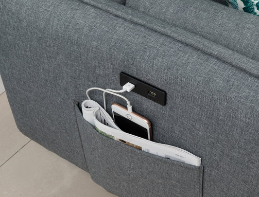 Nathan Dark Gray Reversible Sleeper Sectional, Storage Chaise, Charging Ports