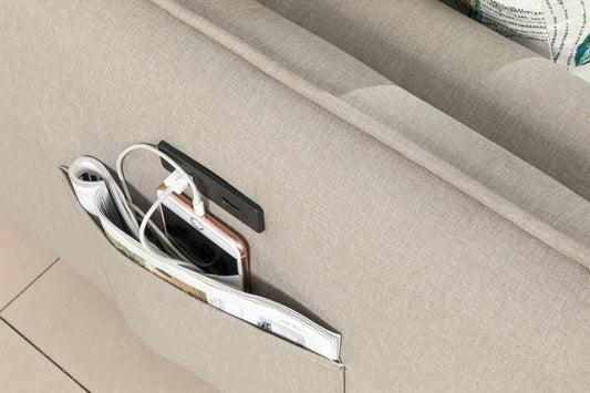 Mia Mid-Century Modern Beige Linen Sofa Couch with USB Charging Ports & Pillows