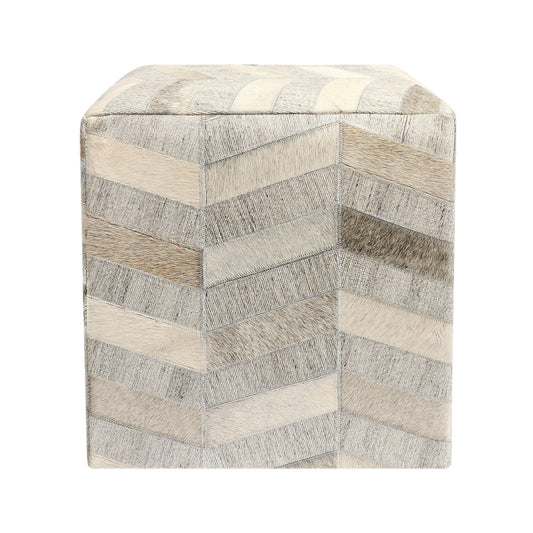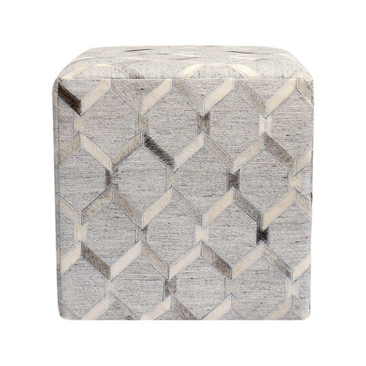 Pasargad Home Galaxy Collection Silver Cowhide Pouf Ottoman