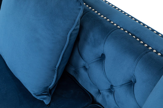Ryan Deep Blue Velvet Reversible Sectional Sofa Chaise with Nail-Head Trim