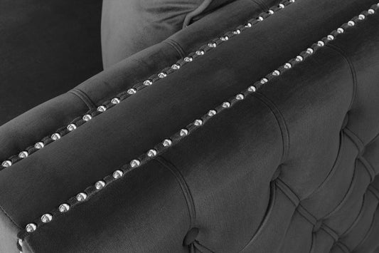 Ryan Dark Gray Velvet Reversible Sectional Sofa Chaise with Nail-Head Trim