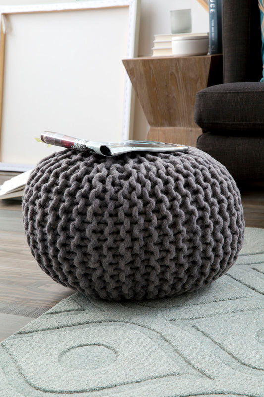 Surya Fallon Charcoal Pouf 18"H X 18"W X 18"D