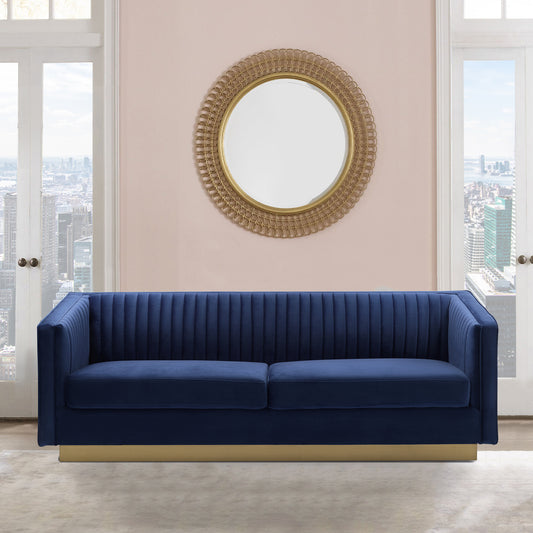 Kester 81" Square Arm Blue Genuine Leather Sofa