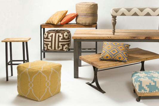 Surya Fallon Saffron Pouf 18"H X 18"W X 18"D