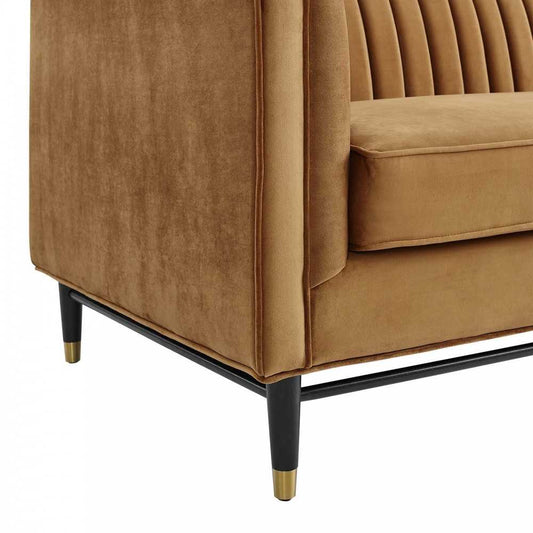 Devote Channel Tufted Performance Velvet Loveseat, Cognac