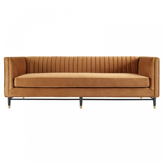 Devote Channel Tufted Performance Velvet Sofa, Cognac