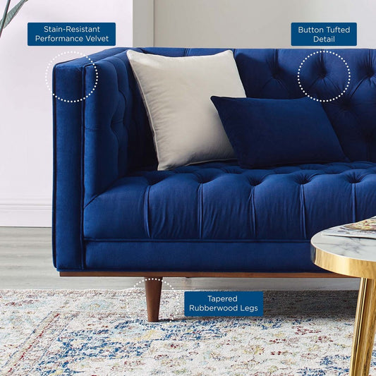Devote Channel Tufted Performance Velvet Loveseat, Emerald