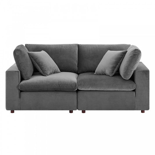 Commix Down Filled Overstuffed Performance Velvet Loveseat, Gray
