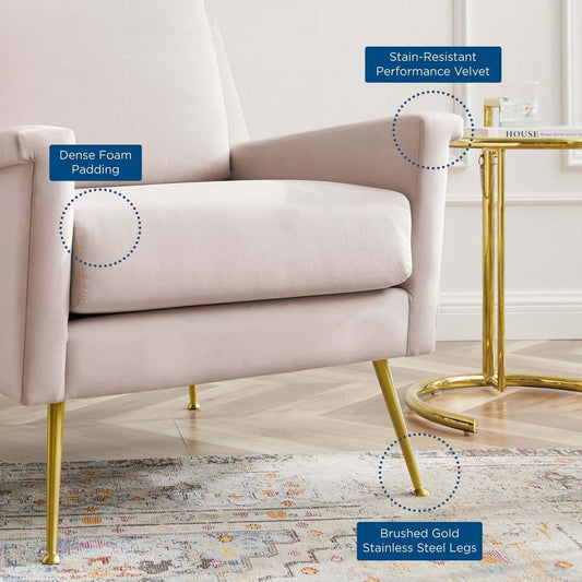Chesapeake Performance Velvet Armchair, Gold Pink