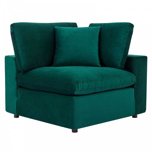 Commix Down Filled Overstuffed Performance Velvet 3-Seater Sofa, Green