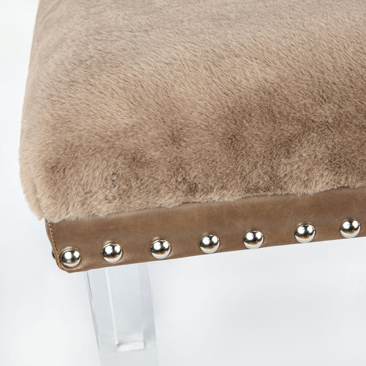 Brianna Modern Luxury Faux Fur Upholstered Bench with Clear Legs - Mink