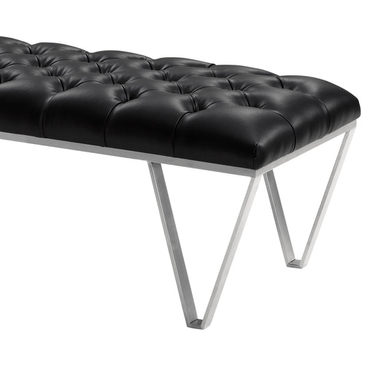 Serene Contemporary Tufted Bench in Brushed Stainless Steel