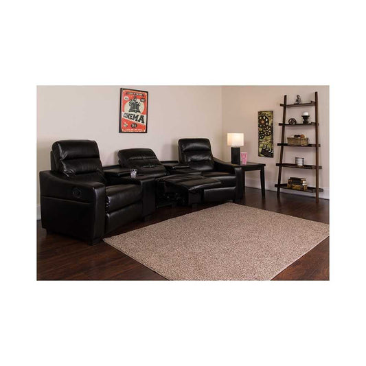 Futura Series 3-Seat Reclining Black LeatherSoft Theater Seating Unit with Cup Holders