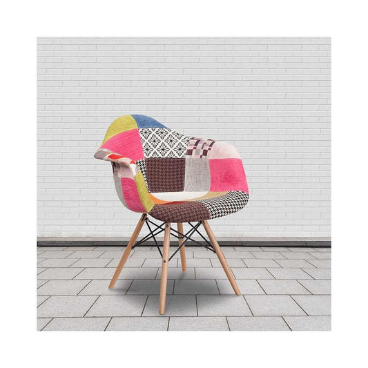 Alonza Series Milan Patchwork Fabric Chair with Wooden Legs
